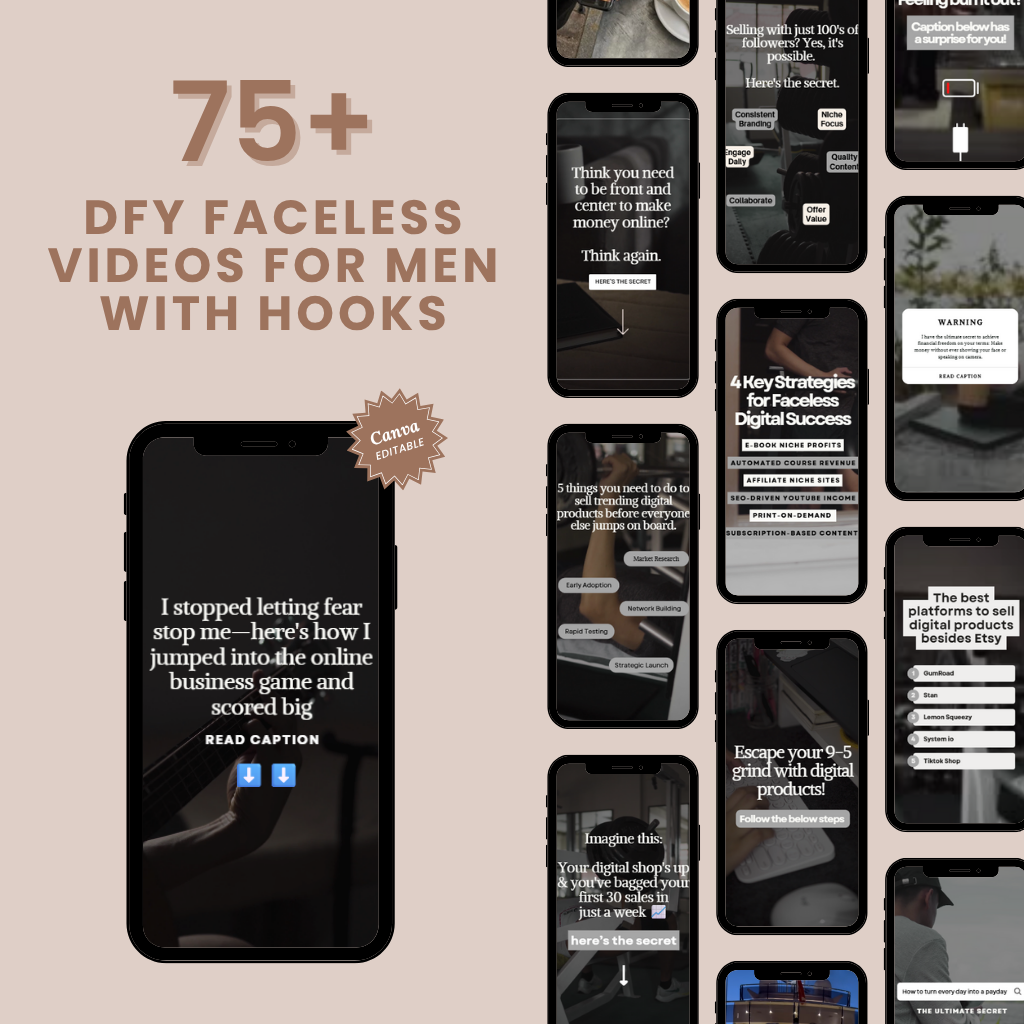 1000+ Faceless Men Reels Dark Aesthetic With Done For You Content Digital Marketing Videos With Master Resell Rights, MRR/PLR, Canva